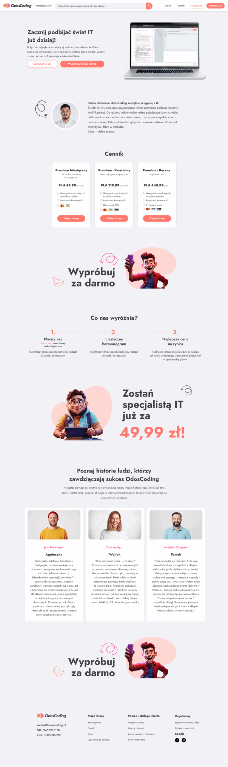- Strony pod kursy, e-booki, usługi